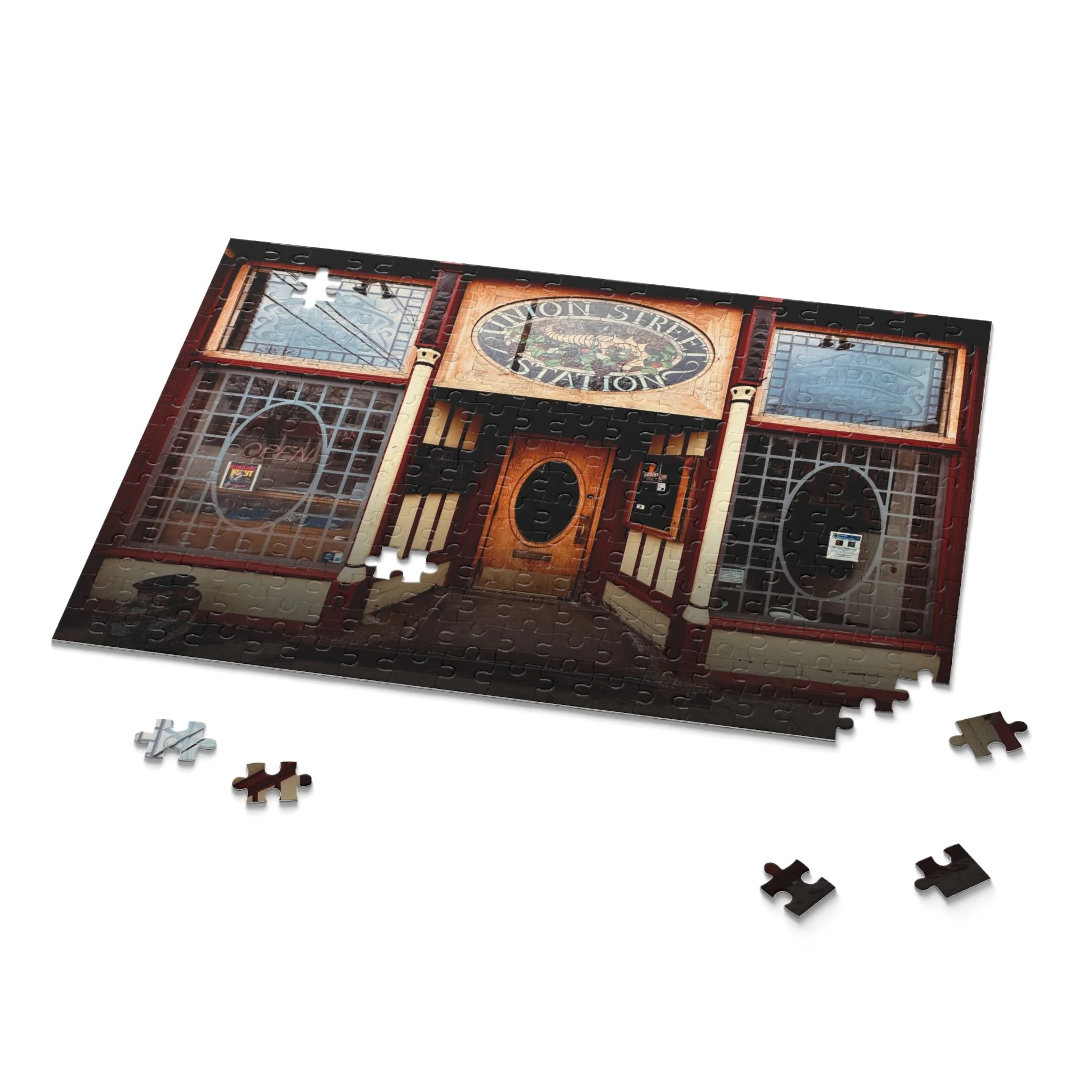 Puzzles, aside from an awesome bar name, are also the perfect downtime activity for friends & family. This jigsaw puzzle is made with high-quality chipboard pieces and ships in a gift-ready box which also features the design for extra presentation points. Our jigsaw puzzles come in 3x sizes: 8" x 10" - (120 pieces), 11" x 14" - (252 pieces), 16" x 20" - (500 pieces).