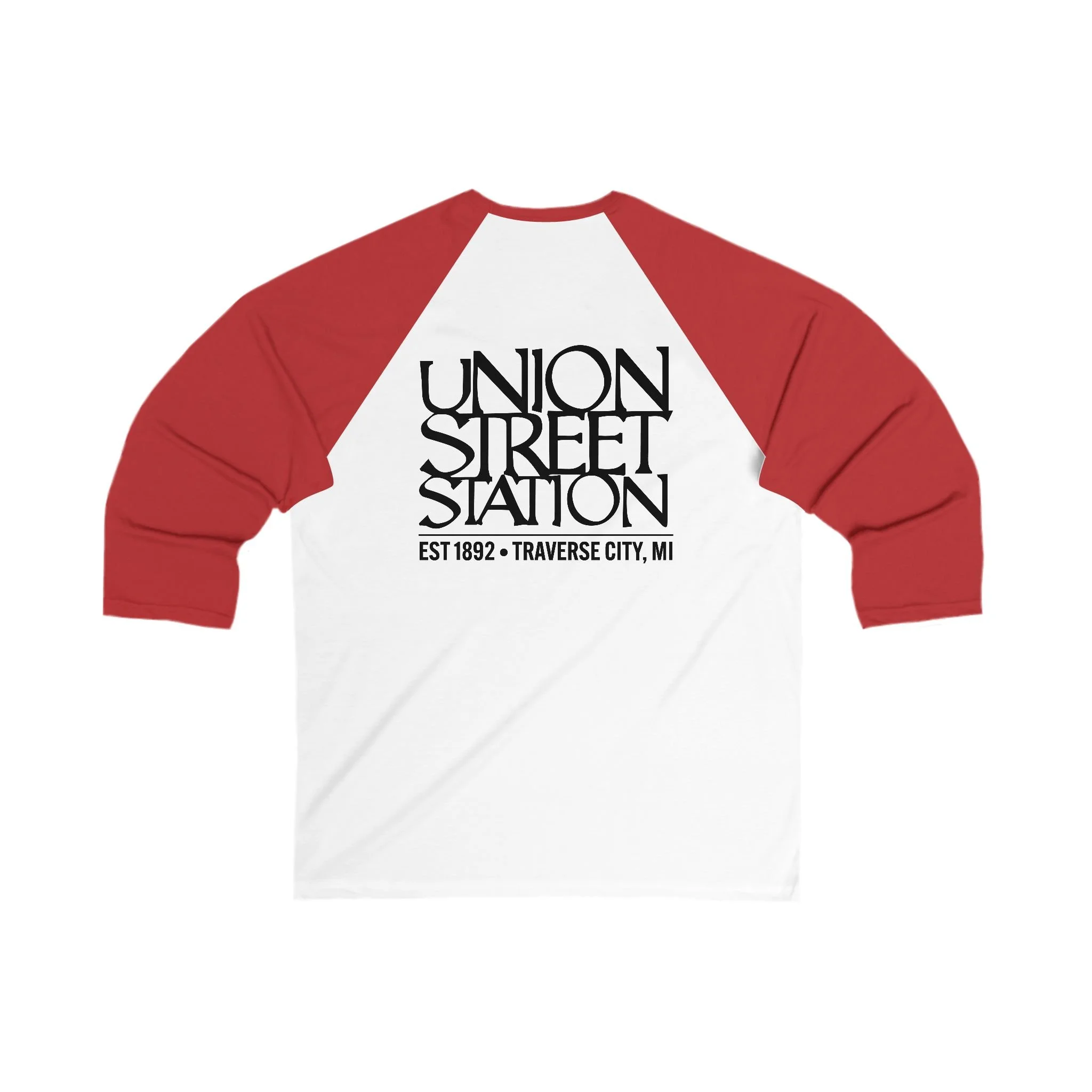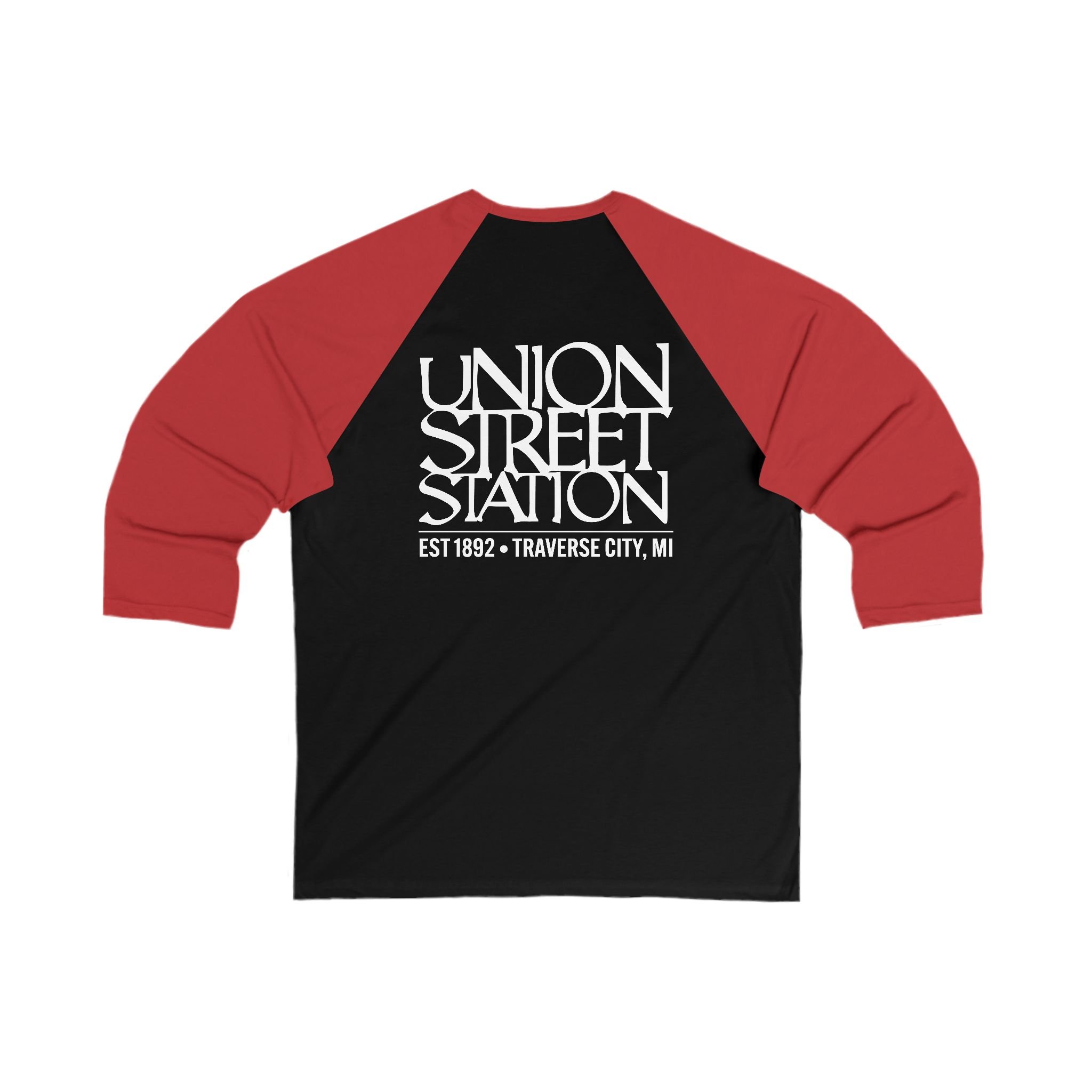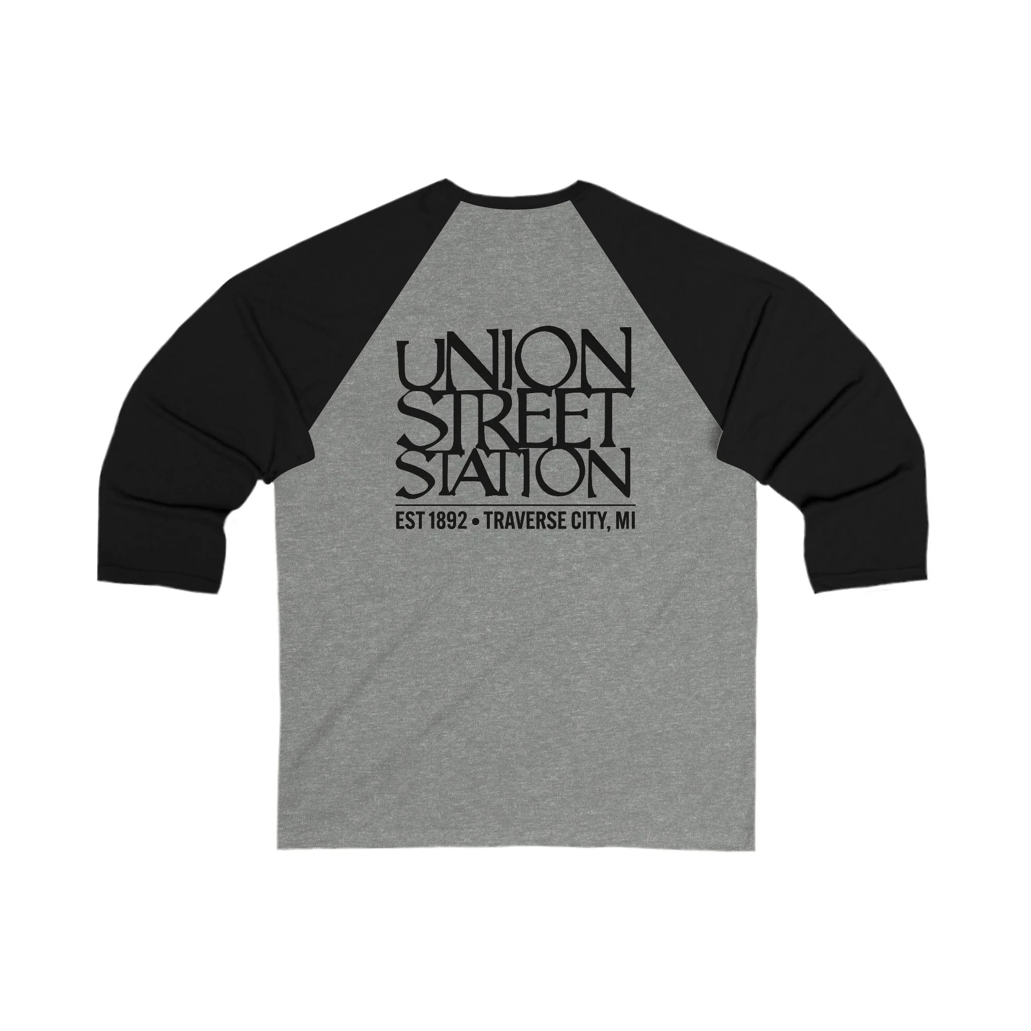 Union Street Station Baseball Tee — Vintage Traverse City Logo 3/4-Sleeve Raglan