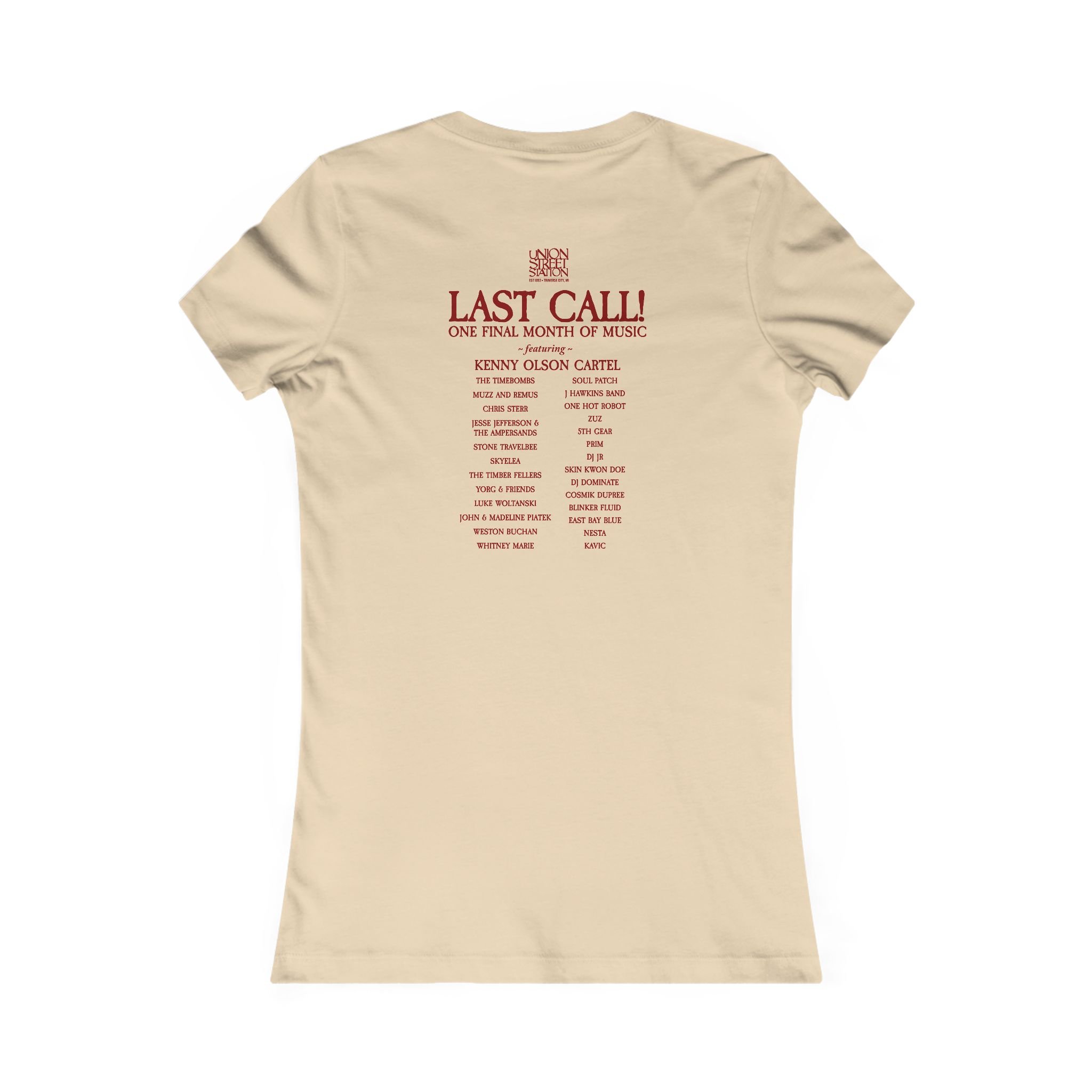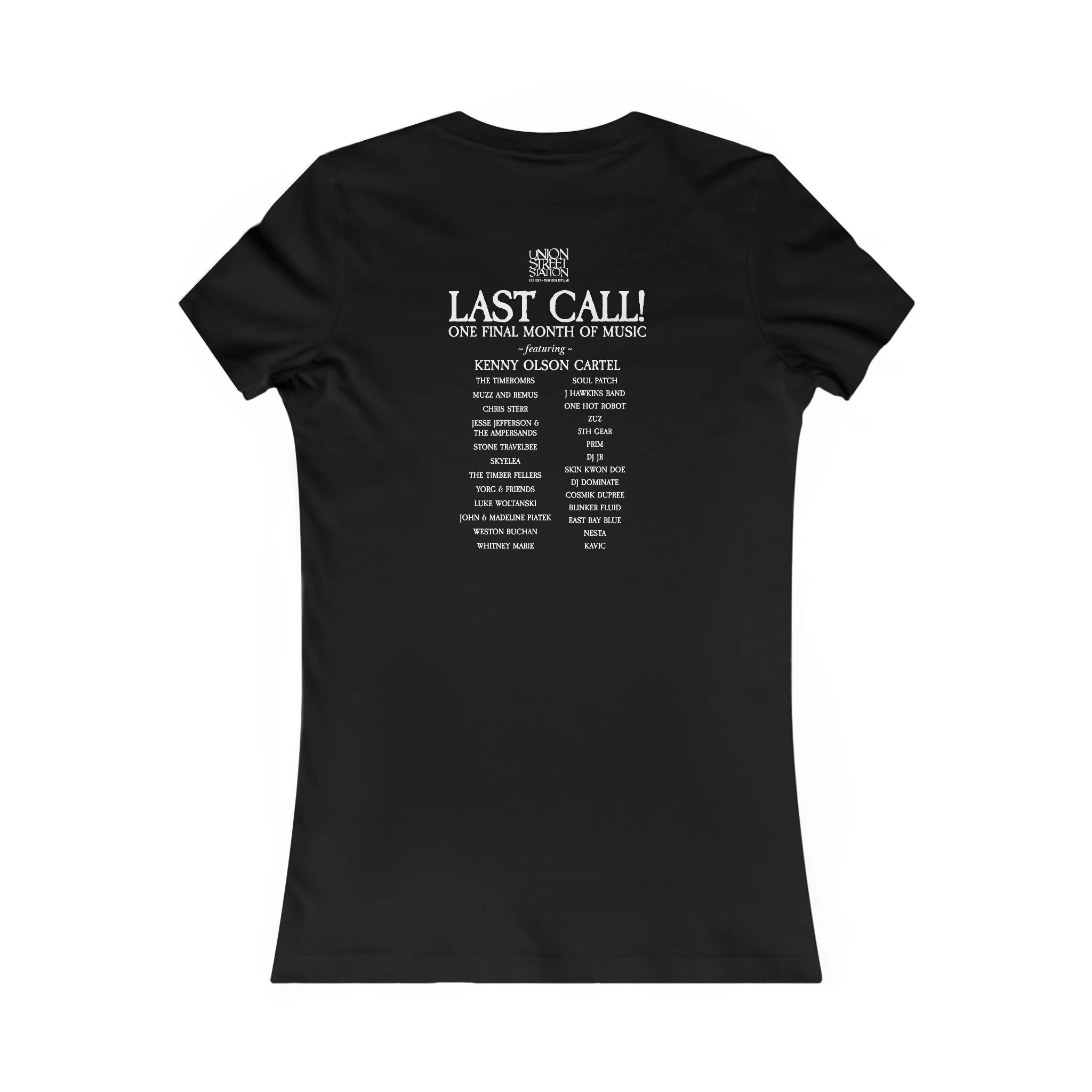 This slim, slightly longer tee brings a quiet, lived-in vibe to everyday outfits. The front shows a finely detailed sketch of a brick music venue — its worn facade and recessed doorway feel like an invitation to step inside. On the back, a vintage-style “LAST CALL” lineup reads like the final setlist of nights you’ll remember: friends crowded at the bar, low stage lights, and that small-town soundtrack. Wear it when you want to carry that last-night energy with you — tucked into high-waist jeans for a city stroll or layered under a worn jacket for shows and late walks home. The fit sits close to the body, so it reads as streamlined and modern while the light fabric keeps it breathable for all-night wear.